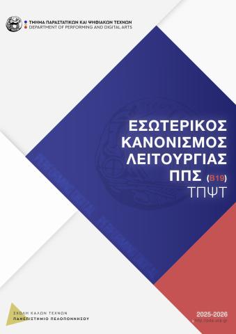 καταρτίζουν τον 🔵 🔴 🟡 Εσωτερικό Κανονισμό Λειτουργίας του Τμήματος Παραστατικών και Ψηφιακών Τεχνών, όπως περιγράφεται στα άρθρα που ακολουθούν (πατήστε τοεικονίδιο PDF για να δείτε τον πλήρη Εσωτερικό Κανονισμό)