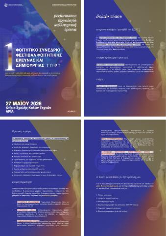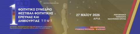Το Τμήμα Παραστατικών και Ψηφιακών Τεχνών της Σχολής Καλών Τεχνών του Πανεπιστημίου Πελοποννήσου διοργανώνει το 1ο Φοιτητικό Συνέδριο και Φεστιβάλ Φοιτητικής Έρευνας και Δημιουργίας με θέμα Performance, Τεχνολογία και Καλλιτεχνική Έρευνα το οποίο θα πραγματοποιηθεί την 🗓️ Τετάρτη 27 Μαΐου 2026 στις εγκαταστάσεις του Πανεπιστημίου στην 📍 Άρια Ναυπλίου.