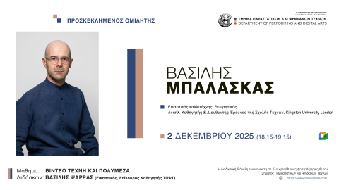 Διαδικτυακή προσκεκλημένη ομιλία του Βασίλη Μπαλάσκα στο μάθημα "Βίντεο Τέχνη και Πολυμέσα" - ΤΡΙΤΗ 02 ΔΕΚΕΜΒΡΙΟΥ 2025
