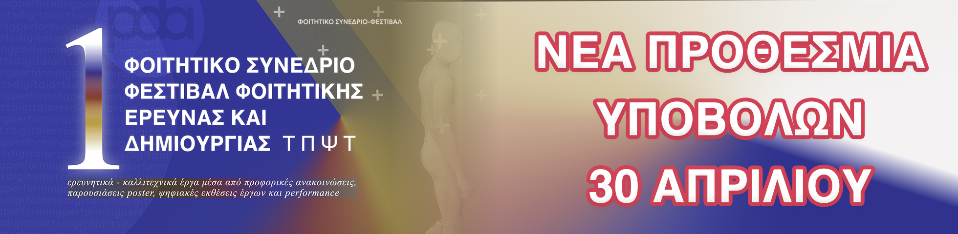 Image Δίνεται νέα ημερομηνία υποβολών για το φοιτητικό συνέδριο/φεστιβάλ, έως και 30 Απριλίου (αντί 20/4) Ο τρόπος υποβολής και οι λοιπές πληροφορίες παραμένουν ίδιες Επισυναπτόμενα Αρχεία neaprothesmia_extendeddeadlinesuybmissions.png